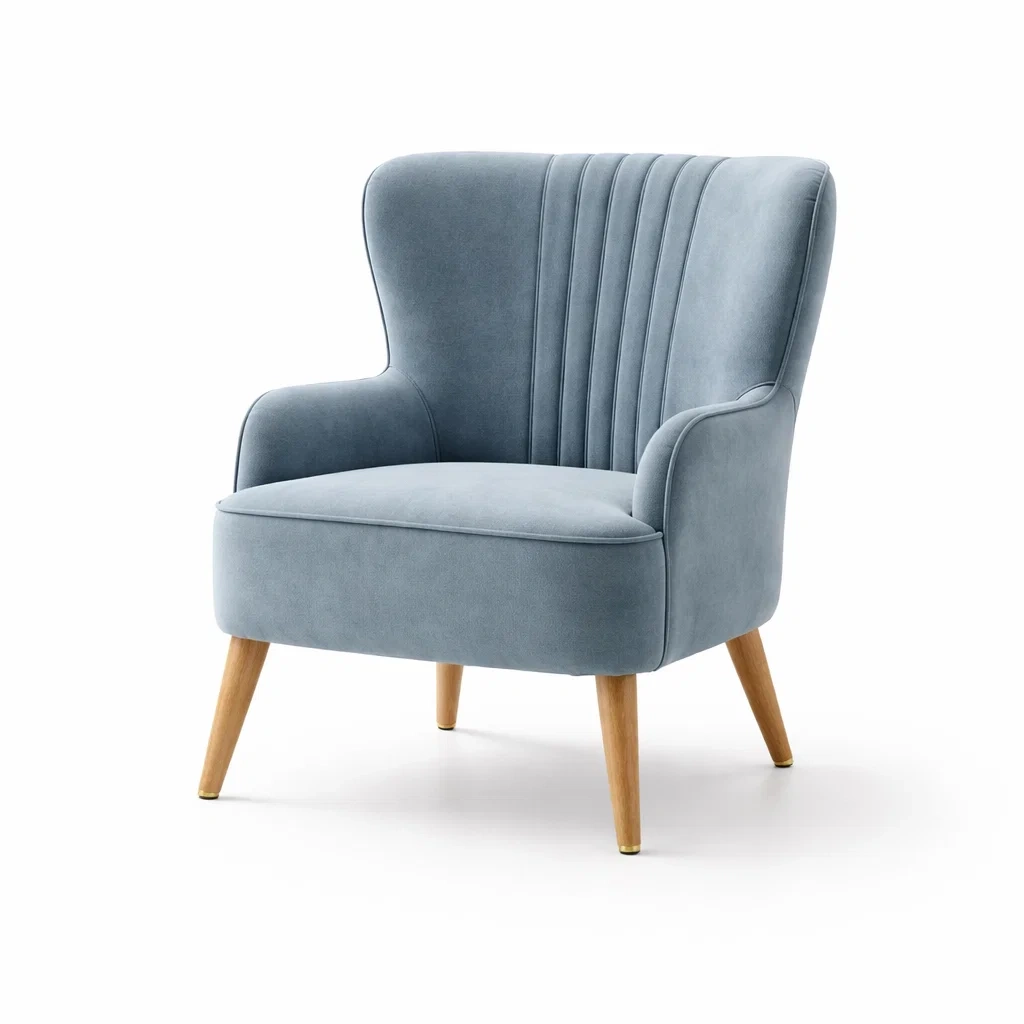 Sedia da relax in velluto con gambe in legno