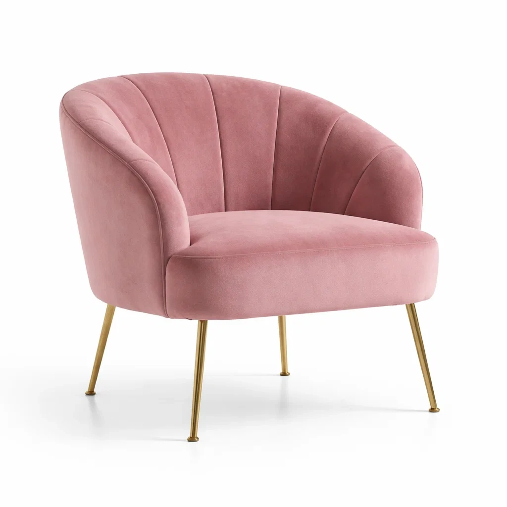 Sedia da relax velluto rosa gambe in metallo
