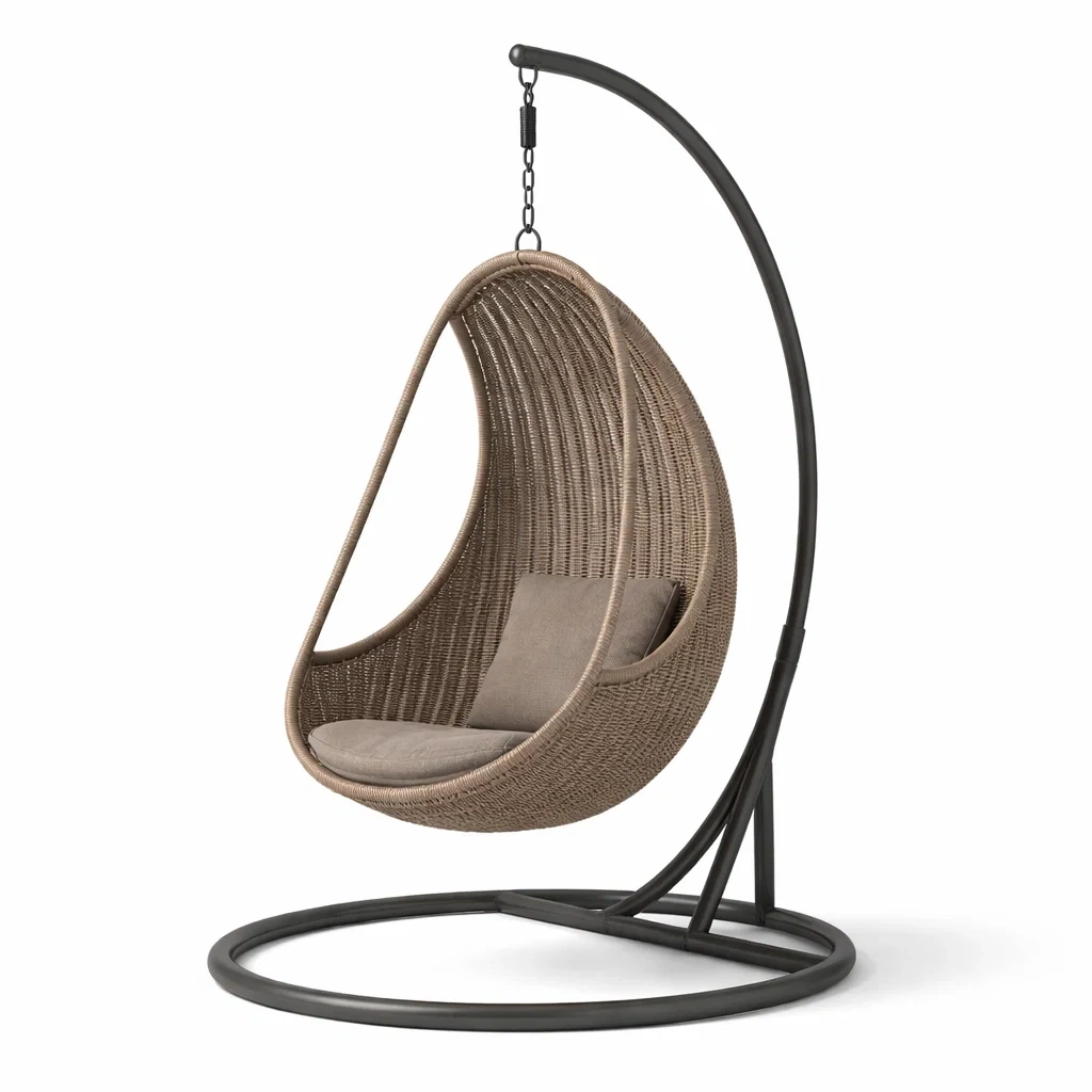 Poltrona sospesa a uovo in rattan con struttura in metallo