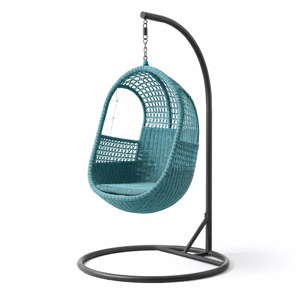 La sedia è realizzata in rattan sintetico con una struttura in acciaio verniciato a polvere.