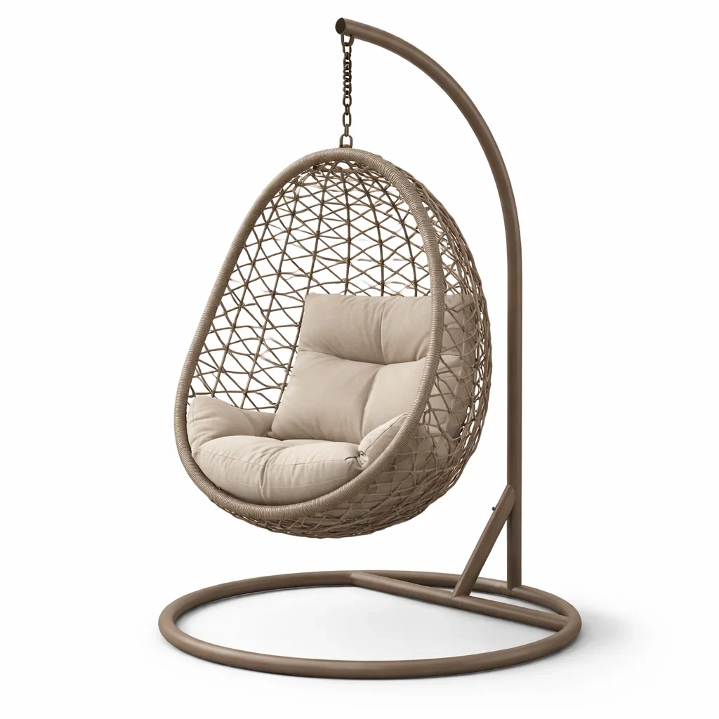 Poltrona sospesa a uovo in rattan sintetico con struttura in acciaio