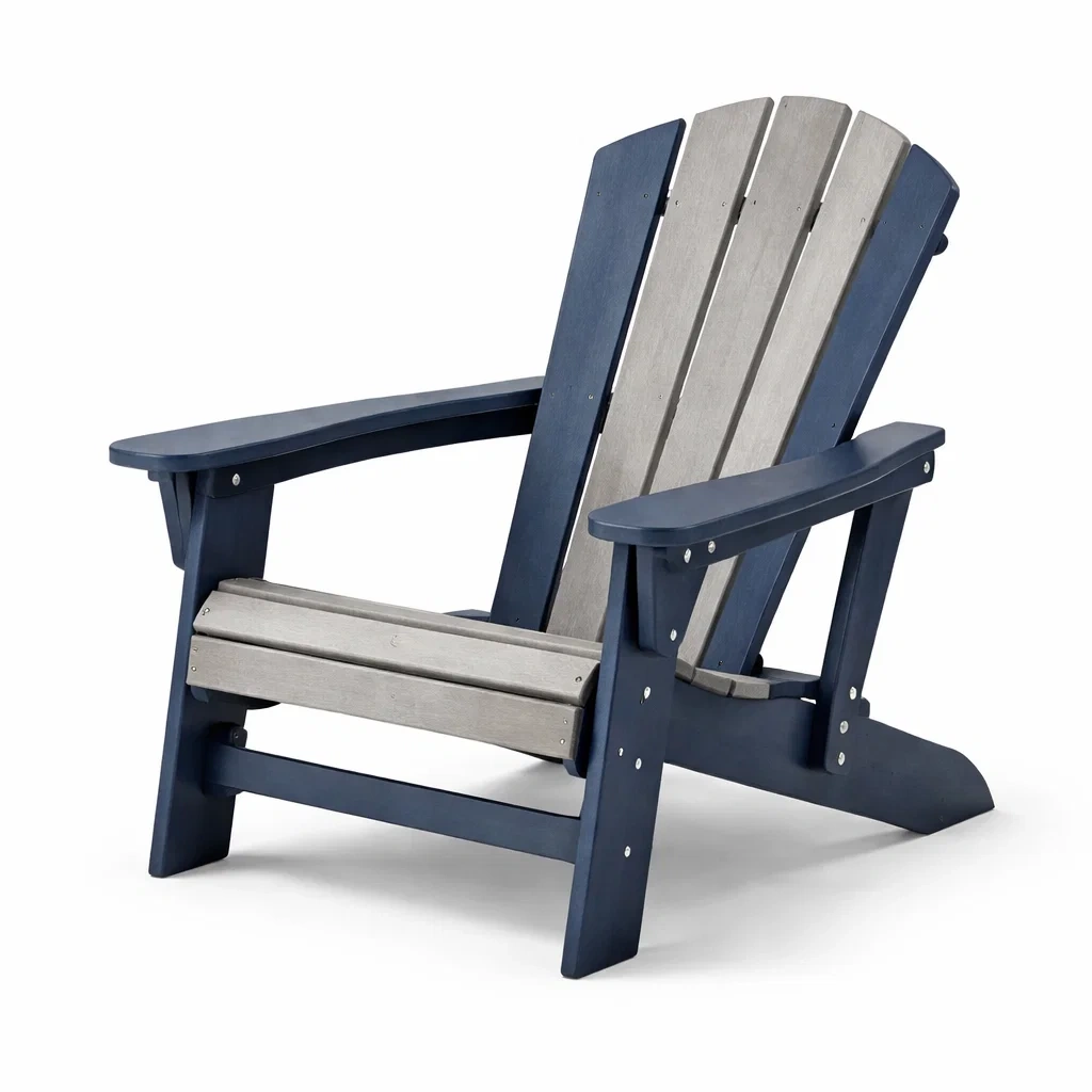 Questa sedia Adirondack è realizzata in legno composito, adatta per l'uso esterno.
